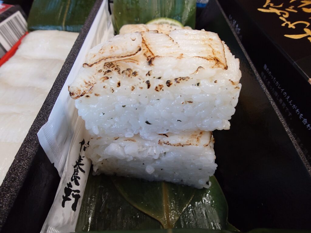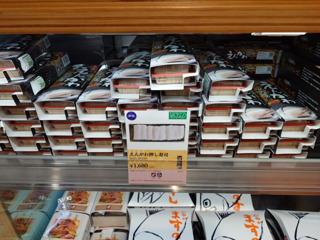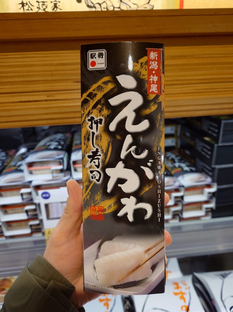 これが友人オススメの品、えんがわ押し寿司(1680円)。筆者、エンガワめっちゃ好きなんで、機会があれば買おうと思ってたんですよ。