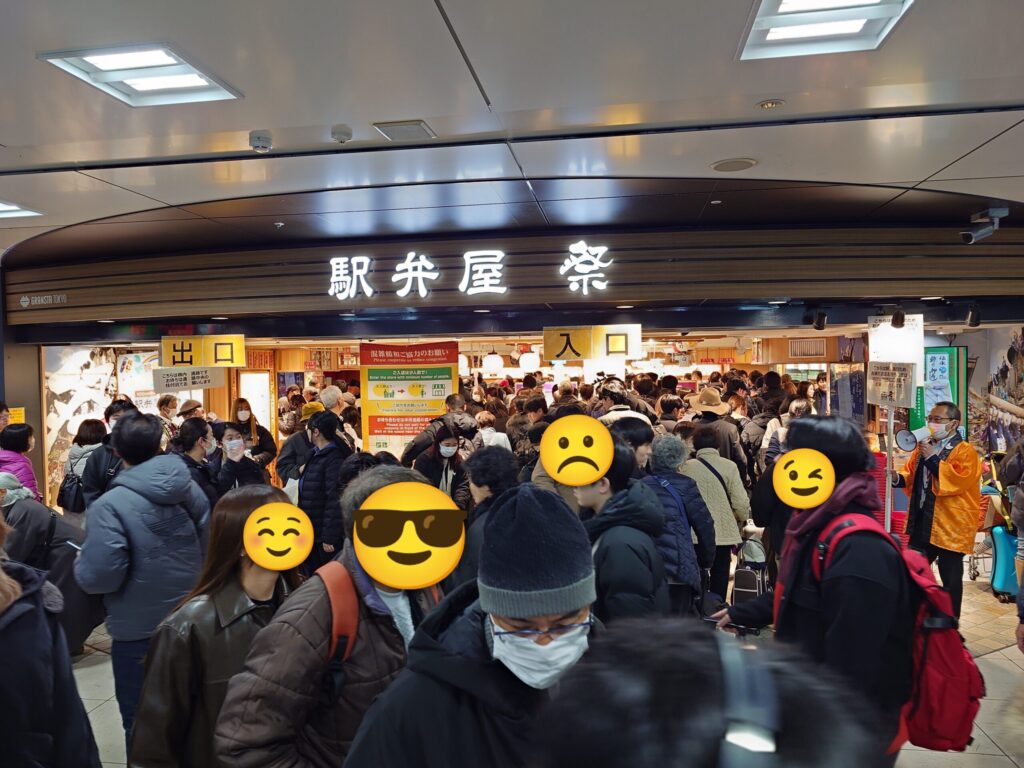 2025年の大みそか。実家に帰るために東京駅にやってきました。駅構内にある「駅弁屋 祭」は入場制限でもしているのかという程の大混雑ぶり。