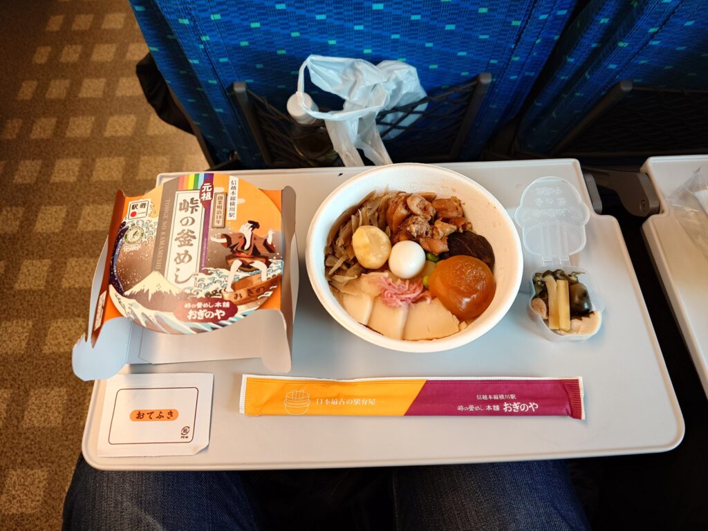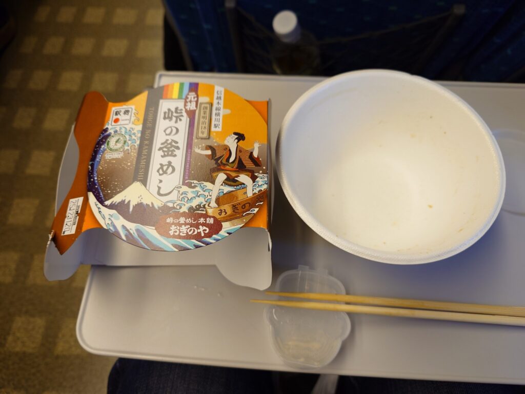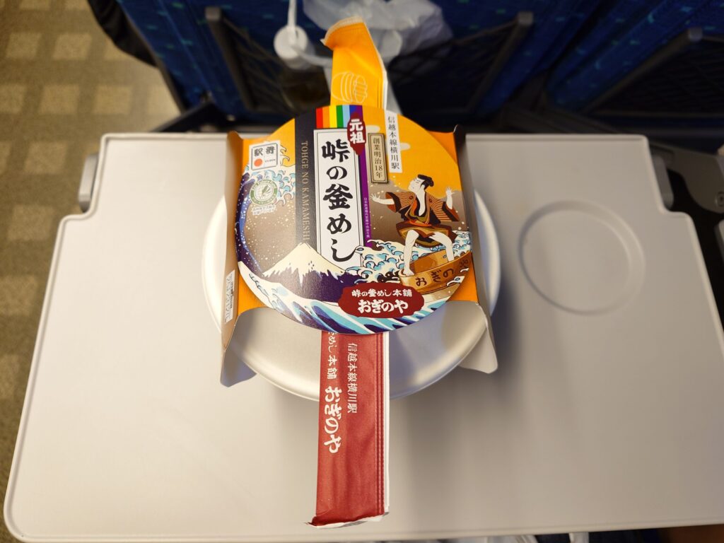 長い列に並び、峠の釜めしを購入できたので新幹線に乗り込みます。