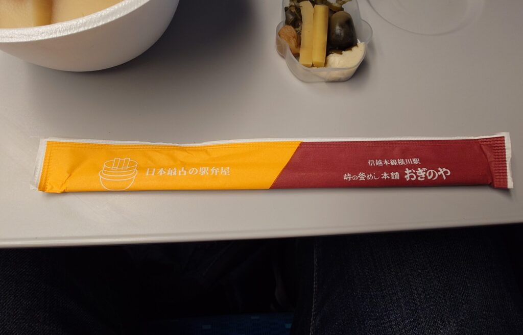 お箸の袋に「日本最古の駅弁屋」との表記があったので気になって調べてみましたが、この荻野屋さんは本当に明治18年(1885年)創業の、現存する日本最古の駅弁屋さんなんだとか。ちなみに名物の峠の釜めしは1958年に誕生したんだそうな。