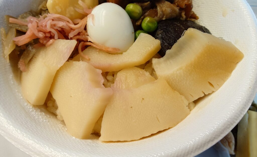 大きめにカットされた筍煮は5切れ入っています。シャクシャクで柔らかく、優しい出汁がしゅんでおり、ほんのり筍の甘味を感じる。