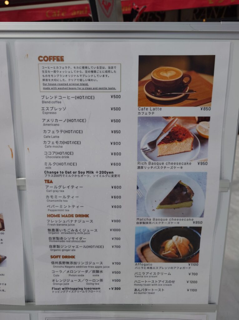 店の前の看板にメニューが掲載されていました。見てみましょう。