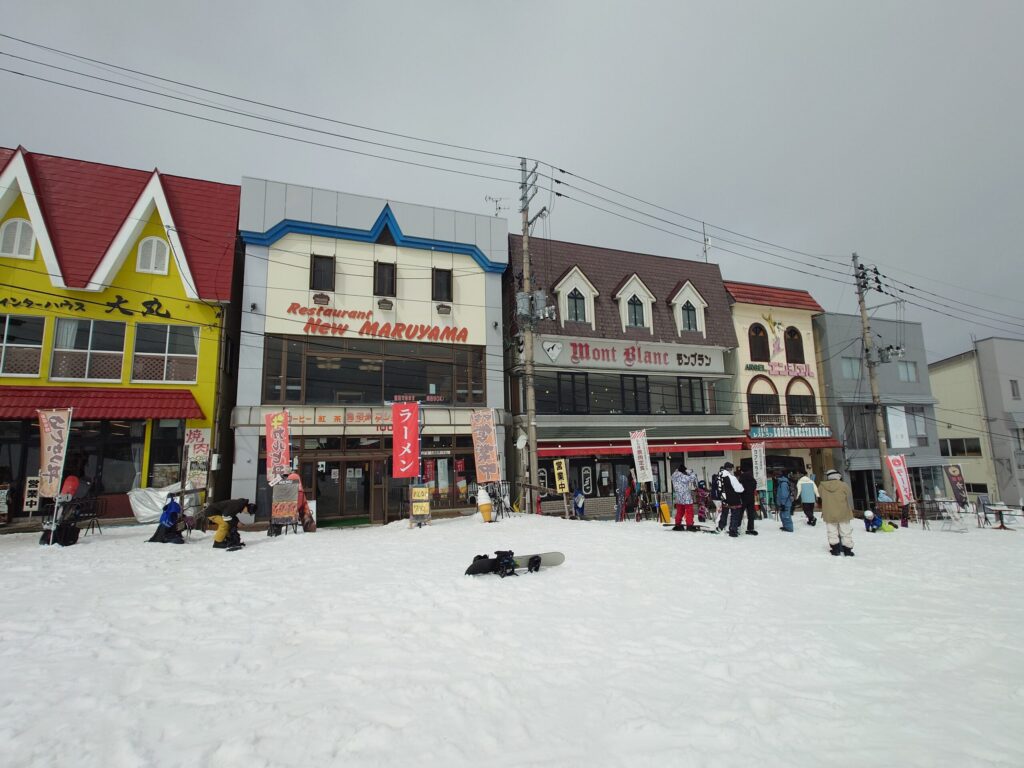 こんな日は気持ちを滑りからグルメに切り替えるのも大事。ゲレンデ中腹にあるレストラン街まで滑り降り、早めにランチをすることに。