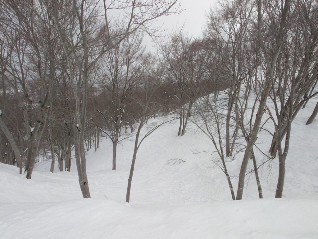 ツリーランコースなんか滑ってしまうと、短時間で太腿がパンパンに。なかなか厳しいコンデションな日でした。