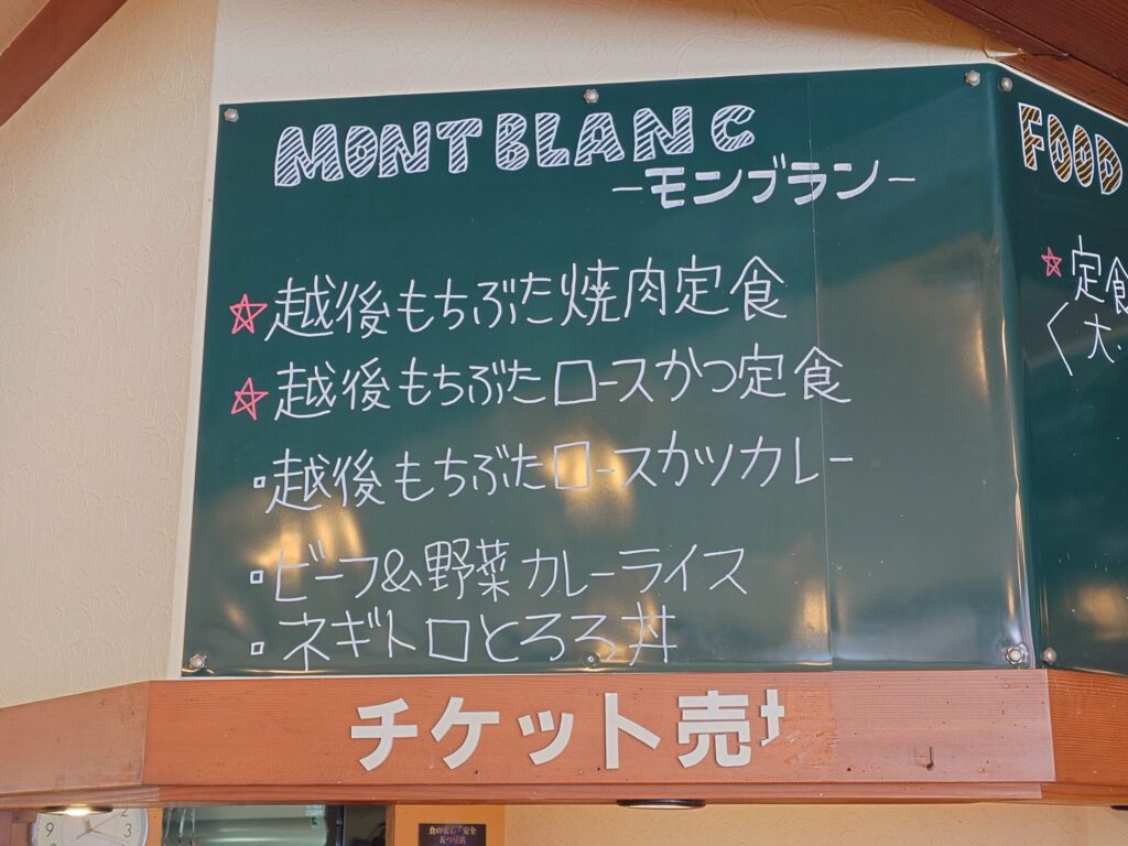 こちらでメニュー表は最後。では、越後もち豚焼肉定食(2200円)を購入へ。