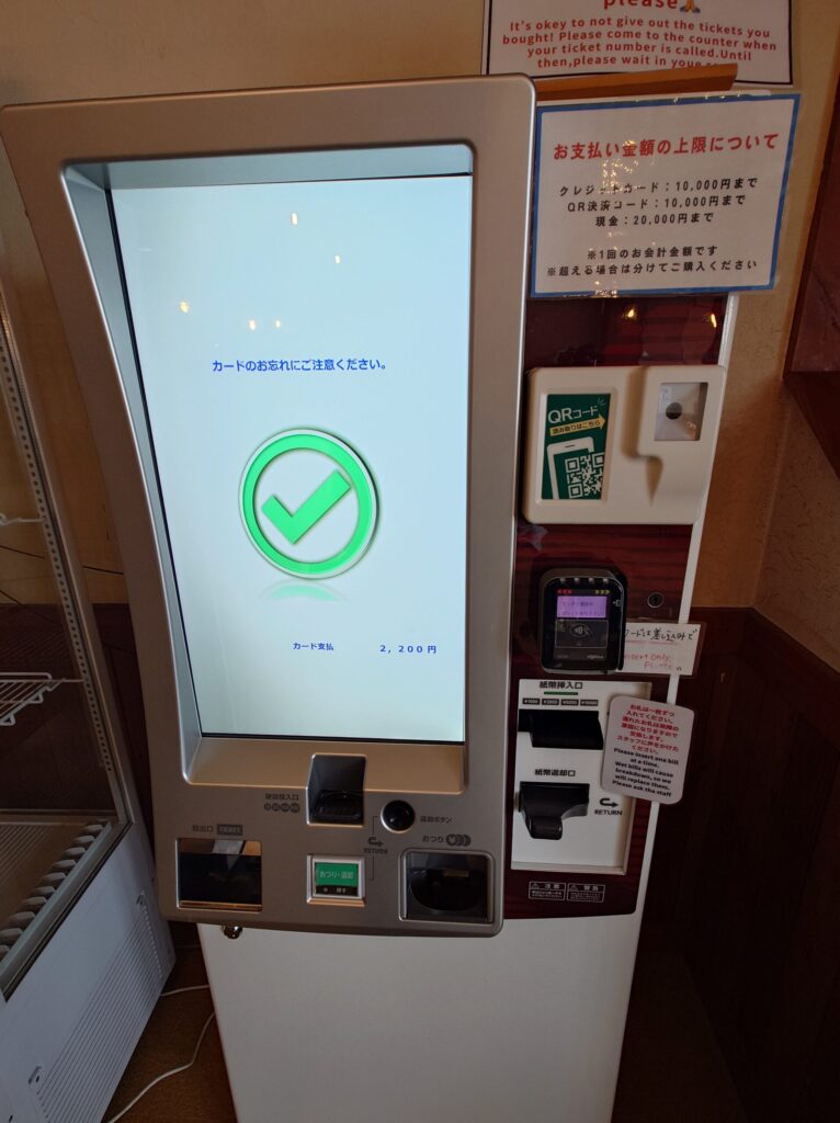 食券機で食券を購入するシステム。クレジットやQR決済にも対応しています。