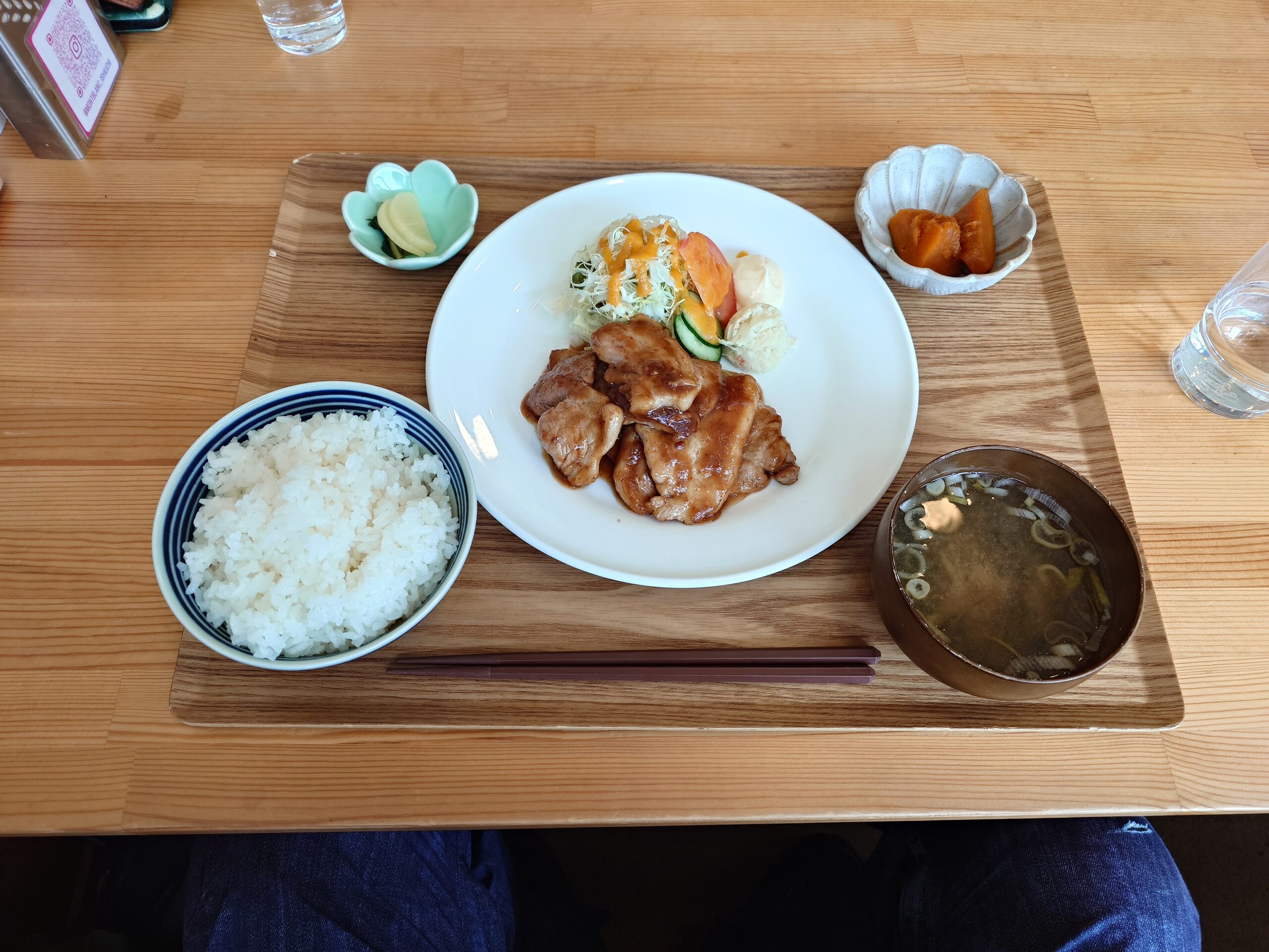ご飯・味噌汁・メインのおかず・小鉢・漬物。理想的な定食といった感じです。
