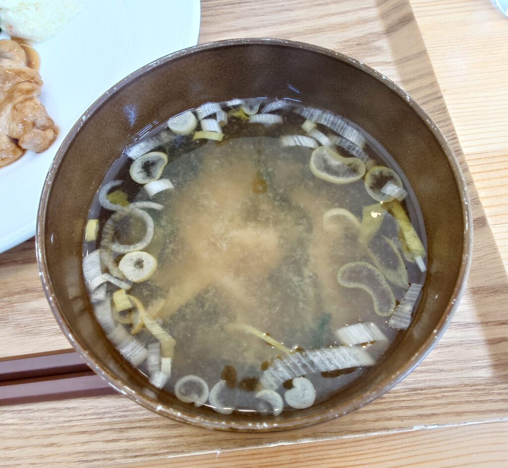 味噌汁はわかめとネギのみのシンプル具材。しっかり出汁が効いて優しい味がします。