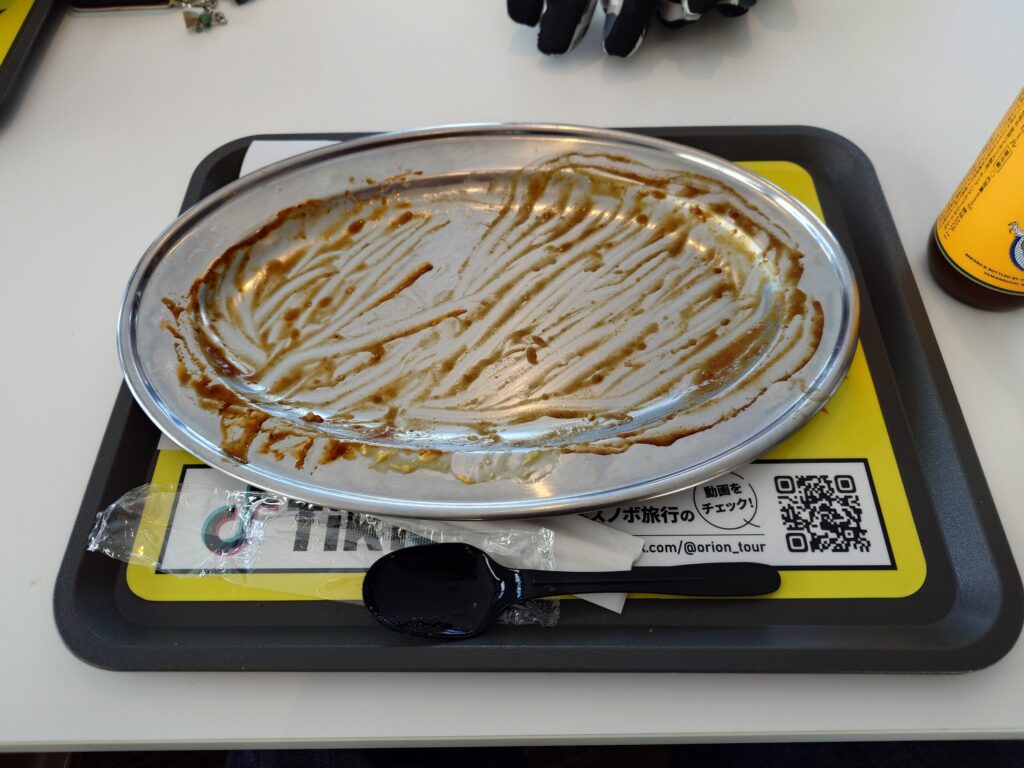 そして完食。お昼過ぎの時点で1日分のカロリー以上を摂取してしまいました(笑)お腹がいっぱいになって、この後滑れるのか心配になります。